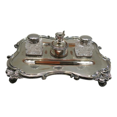 Lot 2301 - A Georgian style silver plated ink stand with...