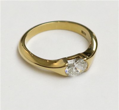 Lot 2411 - An 18ct gold post-war ring set with an oval...