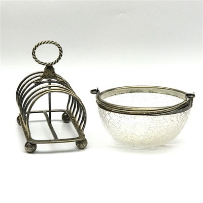 Lot 2304 - An 'ice' glass with EPNS rim and bail handle,...