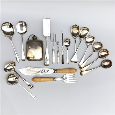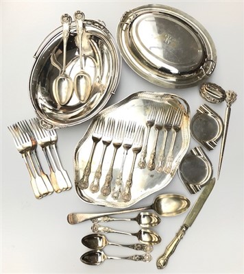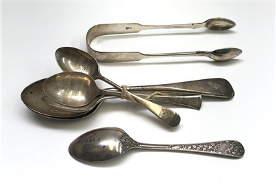 Lot 2187 - Six silver spoons and a pair of silver sugar...
