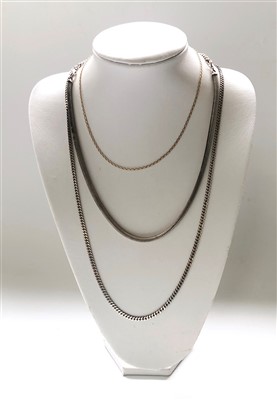 Lot 2407 - A 9ct gold chain necklace and two silver...