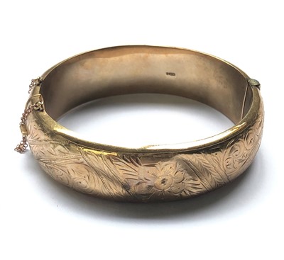 Lot 2408 - A 9ct gold hinged bangle 25.3g.