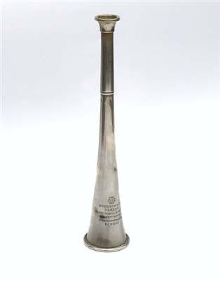Lot 2312 - A Kohler & Son nickle hunting horn, London,...