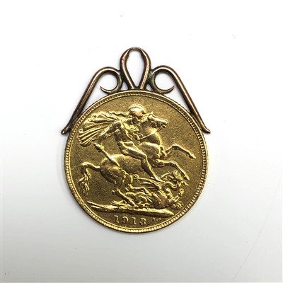 Lot 2491 - A 1913 sovereign with scrolling gold soldered...