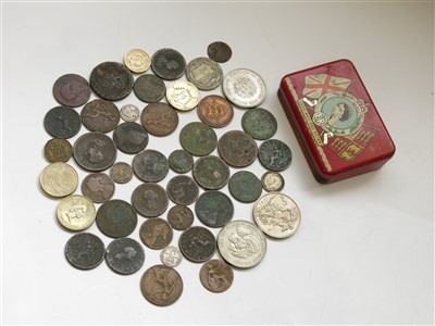 Lot 2493 - A 1953 Oxo tin, together with various coins...