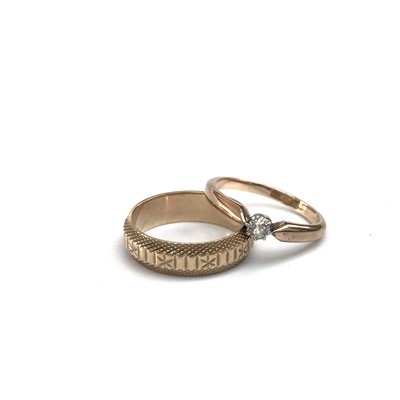 Lot 2517 - A 9ct gold ring, solitaire set a diamond and a...