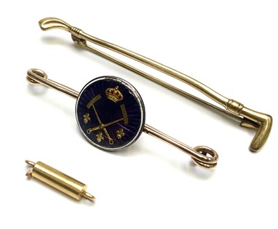 Lot 2479 - An enamelled Polo Club gold brooch, a riding...