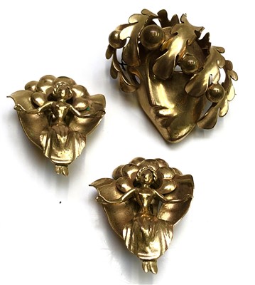 Lot 2480 - A gilt metal, female mask brooch and a pair of...