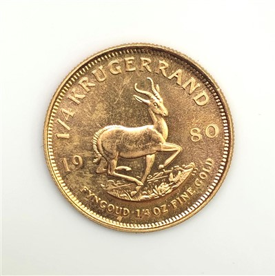 Lot 2501 - A South African gold 1/4 Krugerrand, 1980,...