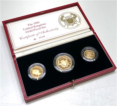 Lot 2513 - A rare gold 1986 proof three coin set, boxed...