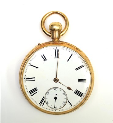 Lot 2515 - A keyless open face 18ct gold cased pocket...