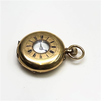 Lot 2516 - An 18ct gold keyless half hunter cased fob...