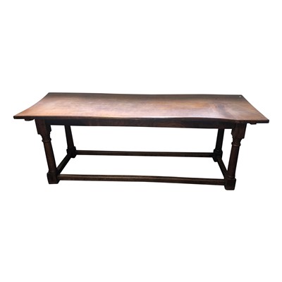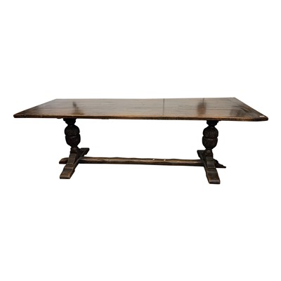 Lot 3485 - A stained oak refectory table with column end...