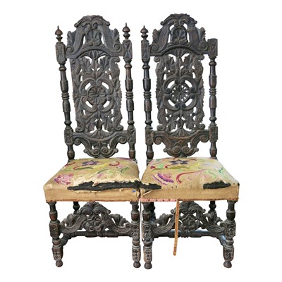Lot 3469 - A pair of Elizabethan style high back heavily...