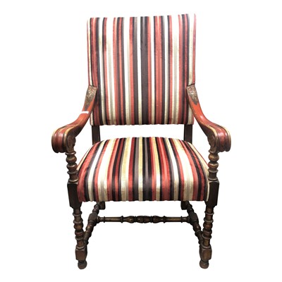 Lot 3502 - A Cromwellian style stained wood armchair,...
