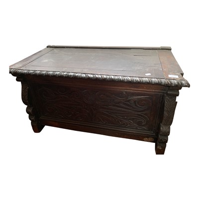 Lot 3471 - A stained oak blanker box, heavily carved with...