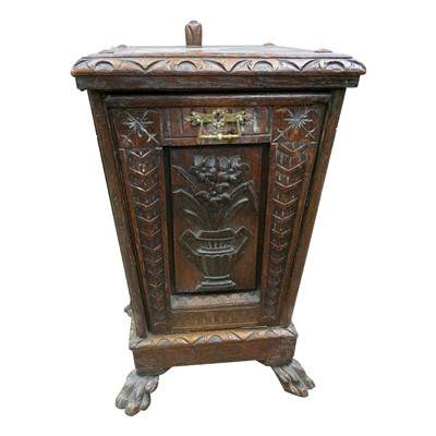 Lot 3473 - A late Victorian carved oak purdonium, on paw...