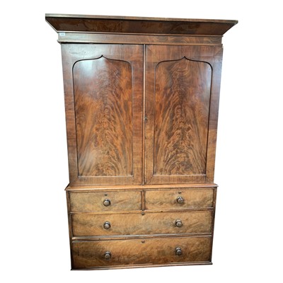 Lot 3459 - A mahogany linen press, 19th century, with two...