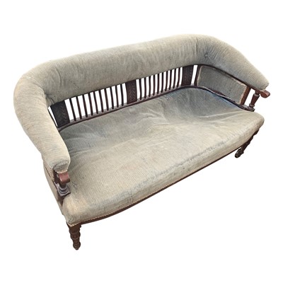 Lot 3461 - An Edwardian mahogany settee, covered in green...
