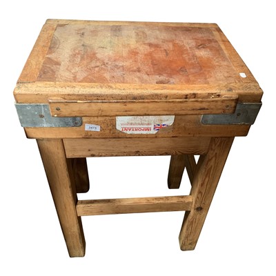 Lot 3475 - A butcher's block, with metal corner brackets,...