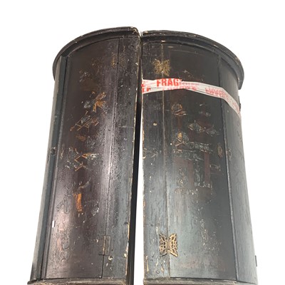 Lot 3499 - A pair of George III black japanned bow front...