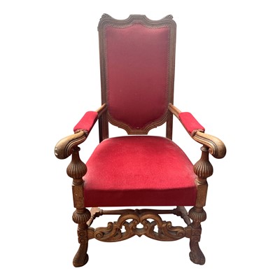 Lot 3523 - A pair of William and Mary style oak armchairs,...