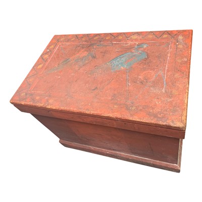 Lot 3510 - A Victorian red painted pine trunk, the...