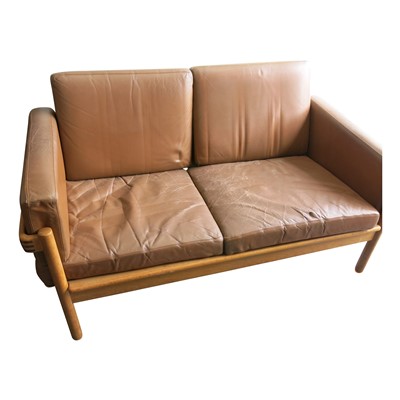 Lot 3538 - A mid century H.W.Klein oak two seater sofa,...