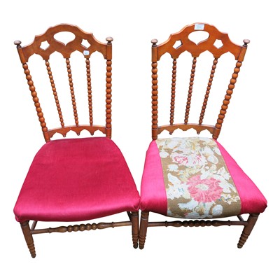 Lot 3532 - A pair of satin birch bobbin turned side...