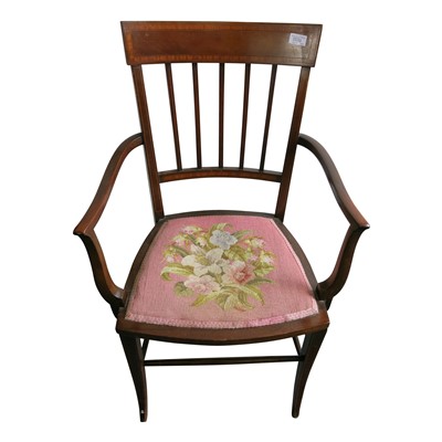 Lot 3536 - An Edwardian inlaid open armchair, height 92cm.