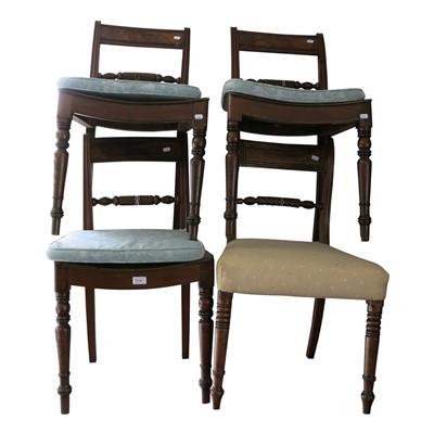 Lot 3530 - A harlequin set of four mahogany dining chairs,...