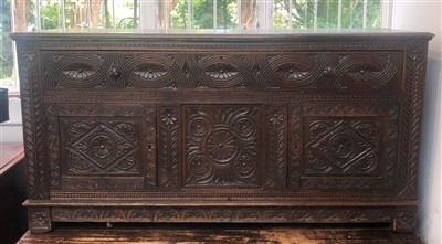 Lot 3528 - A carved oak sideboard, constructed from 18th...