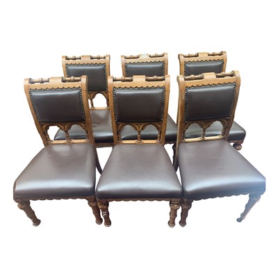 Lot 3541 - A set of six Victorian oak Gothic style dining...
