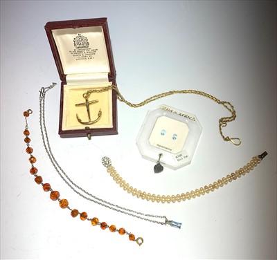 Lot 2678 - A gilt anchor pendant and chain, two unmounted...