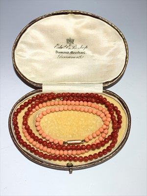 Lot 2677 - A pink coral necklace with 9ct. clasp and a...