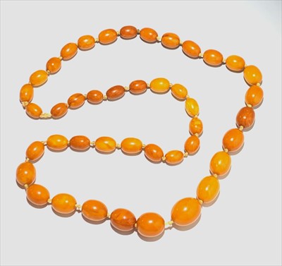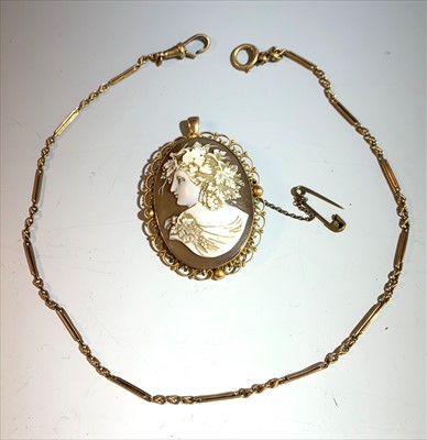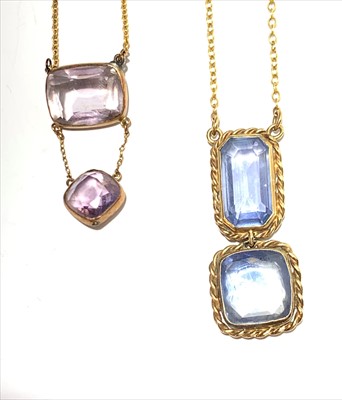 Lot 2675 - Two gold necklaces one with a pair of pale...