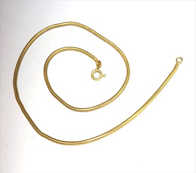 Lot 2673 - An 18ct gold snake necklace. 14gm.