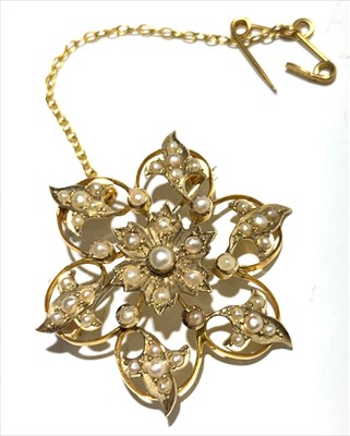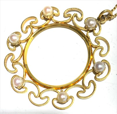 Lot 2634 - A boxed gold and pearl circle pendant with chain.