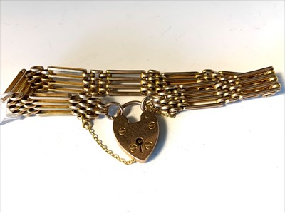 Lot 2646 - A four bar gate linked 9ct bracelet.