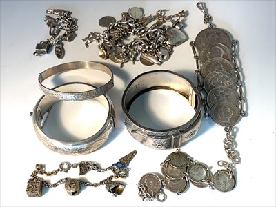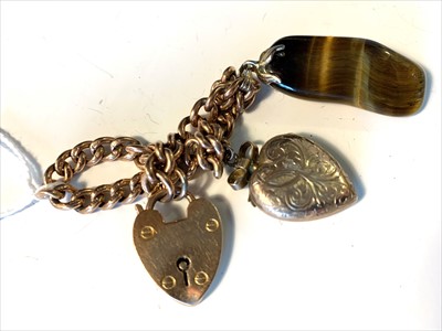 Lot 2645 - 9ct bracelet with heart and stone fobs