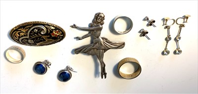 Lot 2650 - Silver dancer, reindeer gilt brooch, two...