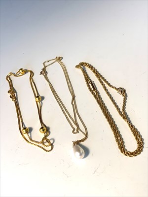 Lot 2643 - Gold rope chain and pearl on chain and gold...