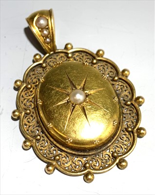 Lot 2653 - Two lockets, gold charm, single ear stud of...