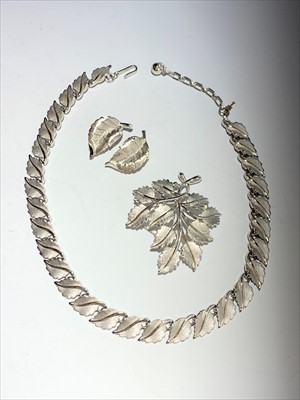 Lot 2630 - A Trifari leaf necklace and matching brooch and earrings.