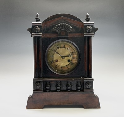 Lot 2926 - An oak cased mantel clock, with twist side...