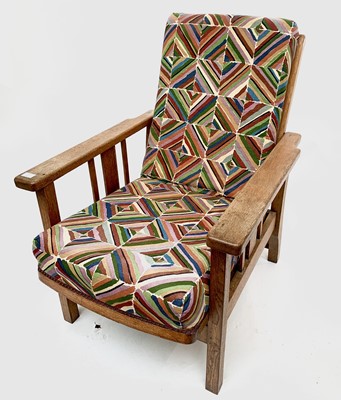 Lot 3162 - A pair of mid-century oak armchairs, with open...