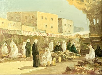Lot 1246 - Arab Market Oil on canvas Indistinctly signed...