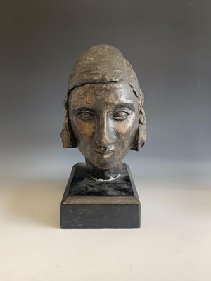 Lot 1276 - A bronzed study of a female head, on wooden...