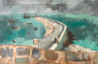 Lot 19 - James Marshall HESELDIN (1887-1969) St Ives - The Pier looking towards Harbour Beach
