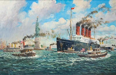 Lot 156 - Richard WOOD (1950) RMS Mauretania Leaving New York